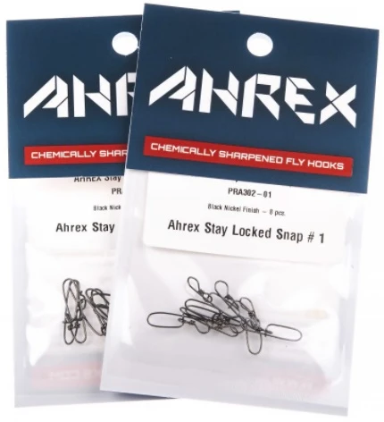 The Ahrex Stay Locked Clip is designed for an easy and reliable connection between fly and line. Easy to open but the design will not allow it to open during fishing. We reccomend the Ahrex Stay Locked Clip for fly-size 1/0 and up.
