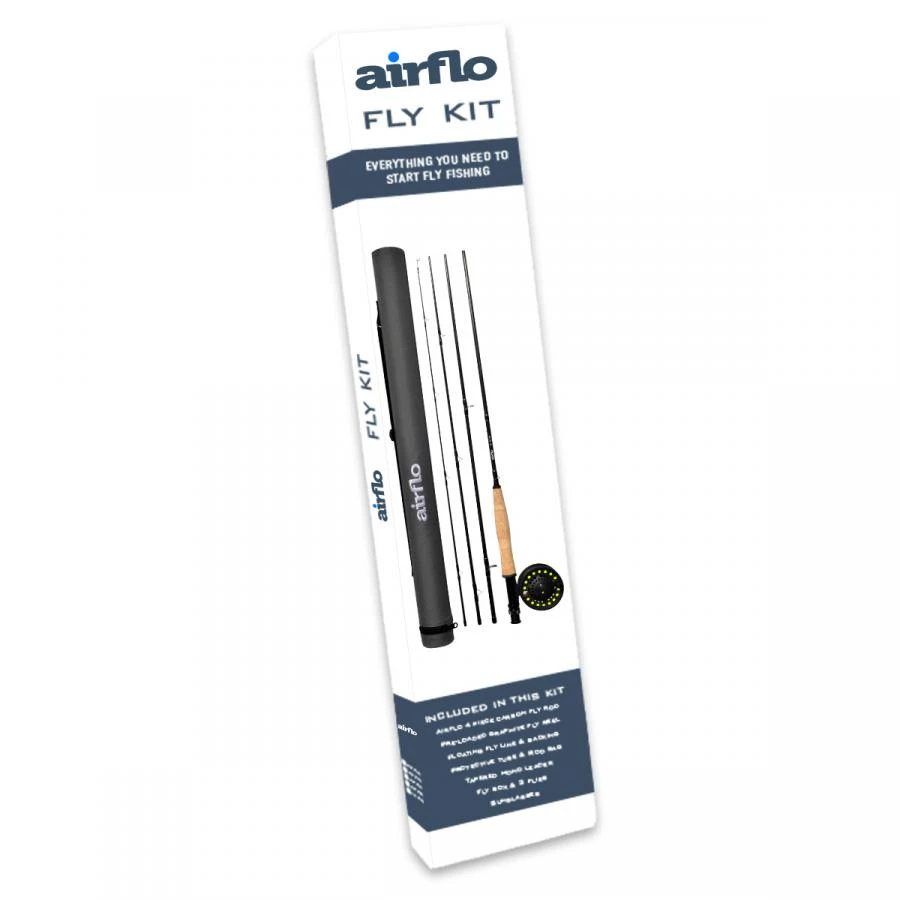 The Airflo Starter Kit Complete 2.0 compromise of a four-piece, mid-tip action fly rod with quality protective tube, a high impact graphite fly reel that is pre-loaded with a premium quality Airflo Velocity floating line and backing. A tapered mono leader, flies, small fly box and sunglasses complete this outstanding value for