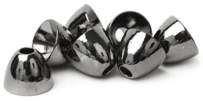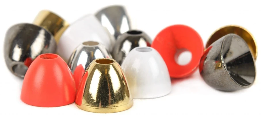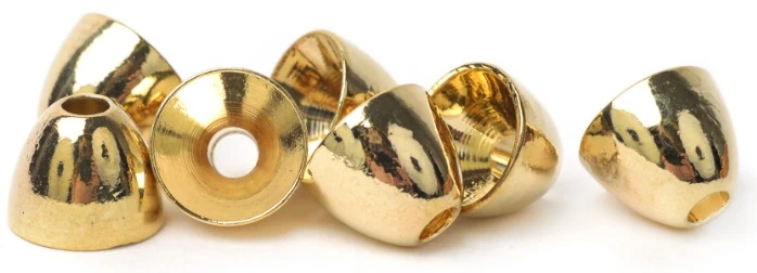 Perfectly shaped brass coneheads to give your tube flies and streamer patterns the right looks and balance. The metal colours are anodized and have a super nice shiny finish and the coloured ones are powder coated in clear bright colors, both of them are really durable to abrasion.