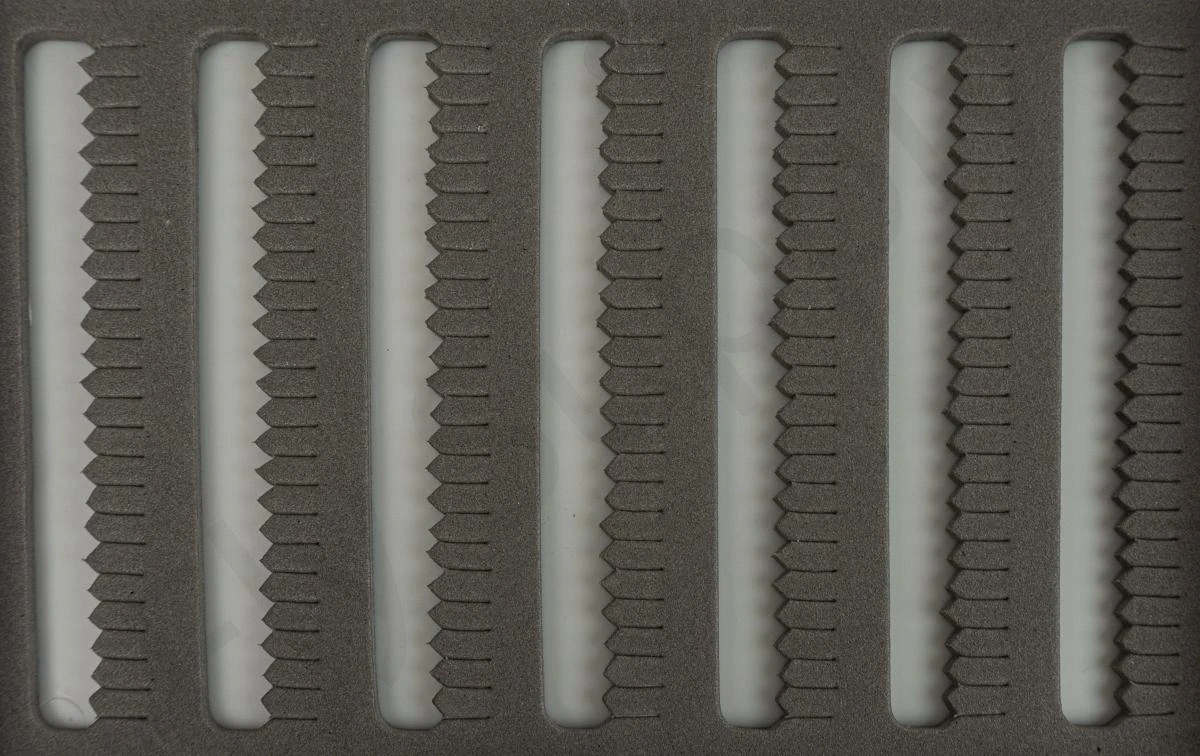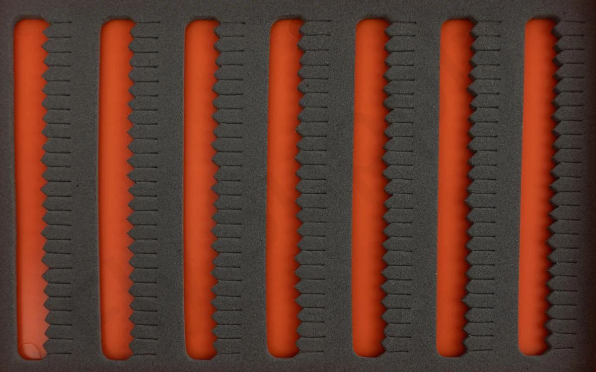 The Euro Flies Lightweight Slit Foam Fly Boxes comes with fourteen rows of slit foam with 24 slots each. Room for a total of 336 flies!Â