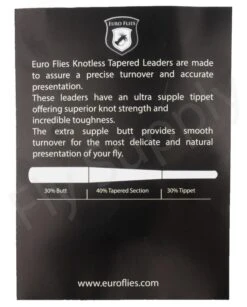 All Euro Flies Supple Butt Tapered Leaders are fitted with a loop so that the leader can easily be attached to the loop of the fly line.
