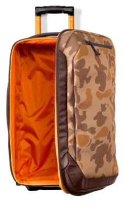 Head off the beaten path with confidence using our travel-tough carry-on roller bag featuring a hardshell-back case. Designed by our experienced adventure travelers, this bag is made of 100% recycled CORDURA® re/cor™. It’s lighter weight, water repellent, and sized to fit most carry-on requirements. The ergonomically engineered telescoping trolley handle and low-profile wheels make easy work of navigating airport terminals and city streets. Lockable zippers, interior mesh compartments for organizing contents, and hidden daisy chain for holding attachments.