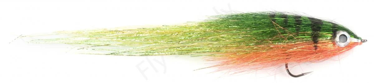 Besides the best natural and synthetic materials the new released Tab Eyes have been used on this streamer. Additional to be glued on, they are tied in at the head of the fly which increases durability a lot while fishing predators with sharp teeth.