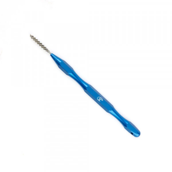 This ergonomic formed dubbing brush looks good and works perfectly. It is made of anodized aluminiun and a steel brush. This fly tying tool will last for your whole life and helps you to brush out dubbing, hairs and tons of other materials.