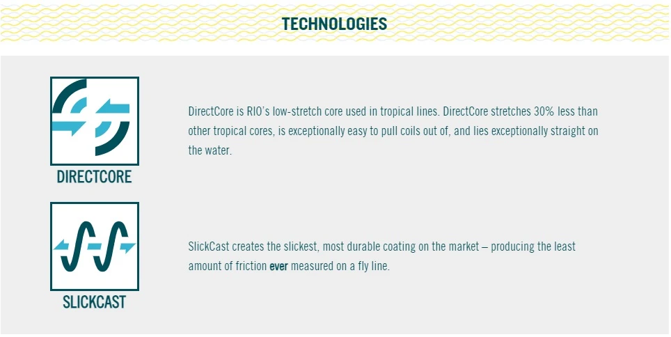 Conquer the flats with RIO’s Flats Pro tropical saltwater line. This line has a mid length head and long back taper for smooth, effortless loops, and a weight distribution that provide perfect presentations of just about any fly you are likely to use. Each line is built on RIO’s low-memory DirectCore that is extremely easy to anneal (stretch) and lies perfectly straight on the water, yet retains the stiffness needed to cast in hot conditions. In addition the line is built with SlickCast—the slickest, most durable coating on the market.