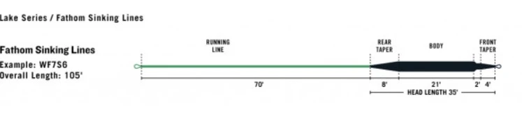 The Fathom lines by RIO Products, like the RIO Products Fathom Sinking S6 Fly Line, are a series of sinking fly lines designed specifically for the lake angler. Each RIO Products Fathom Sinking S6 Fly Line has a short, quick-loading head for minimizing the number of false casts, and for quick, easy distance, and a colour contrast between the head and the running line to easily show the line’s loading point. In addition, each line is built with a Hang Marker that shows anglers when to stop stripping, and when to fish the “hang”, and features RIO Products’ “Density Compensation” (except type 7) for complete fly control.