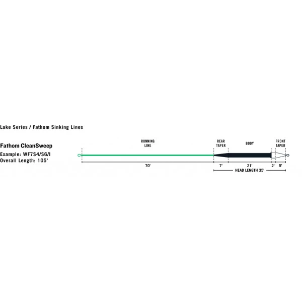The RIO Products Premier Fathom CleanSweep Sinking Fly Line features a two meter clear (intermediate) tip with a welded loop on the front end.