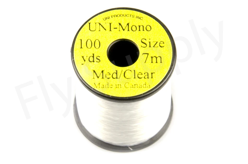 The Uni Mono Medium Clear 100 yds is a nice, translucent monofilament thread, ideal for ribbings and also great as tying thread for medium sized (saltwater) flies and streamers.