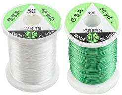 The UTC GSP 10/0 Thread 50 denier is a 50 denier (10/0), extremely strong fly-tying thread manufactured of gel-spun polyethylene (GSP). The UTC GSP 10/0 Thread 50 denier is the strongest thread for its thickness and it can be coloured with markers, if necessary.