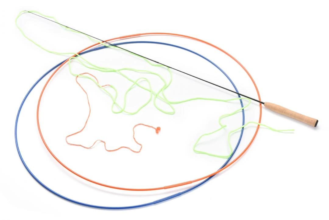 The package includes a miniature Vision Tane fly rod 4ft (121 cm) with a bulky fluorescent yarn. The yarn behaves pretty much the same way as a fly line and gives you a valuable training also in situations where a full length fly line is impractical. The package also includes two mountable target rings for accuracy practising. A great way to organise a fly fishing related game indoors with your family and friends.