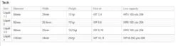| Item | Diameter | Width | Weight | Line class | Line capacity |